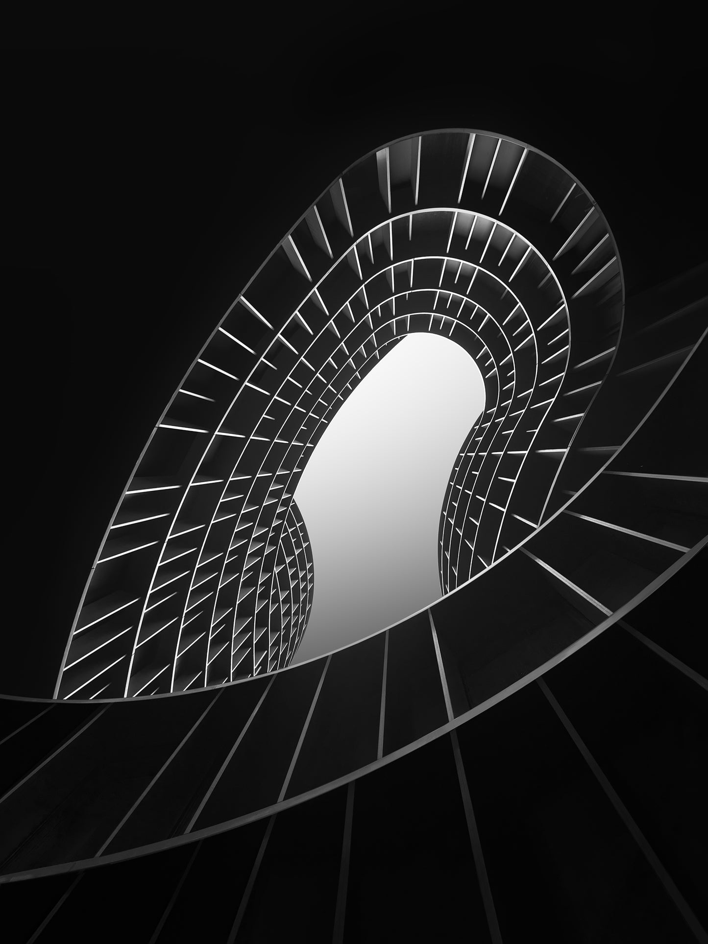 Photographing this architectural feature I sought to connect with my subject through abstraction reducing the structure in its most essential expression. While composing the image, I noticed how the repetitive curving lines culminated in the naive outline of a human face, gently tilted towards the light. This transformed the image into something beyond architecture alone - infusing it with hope and renewal.