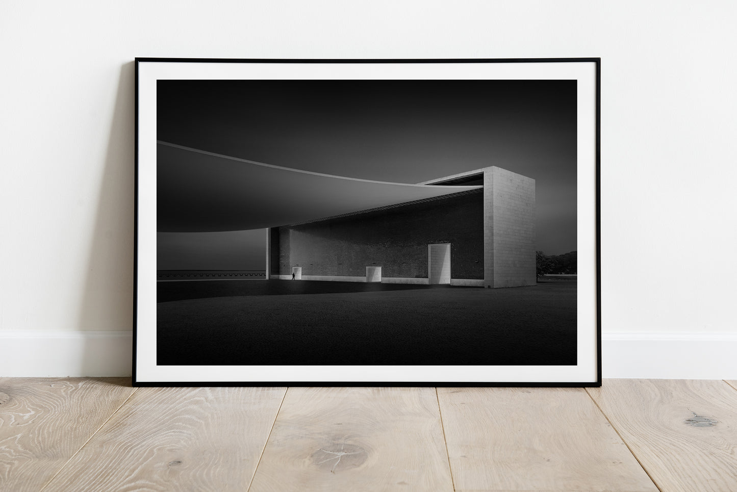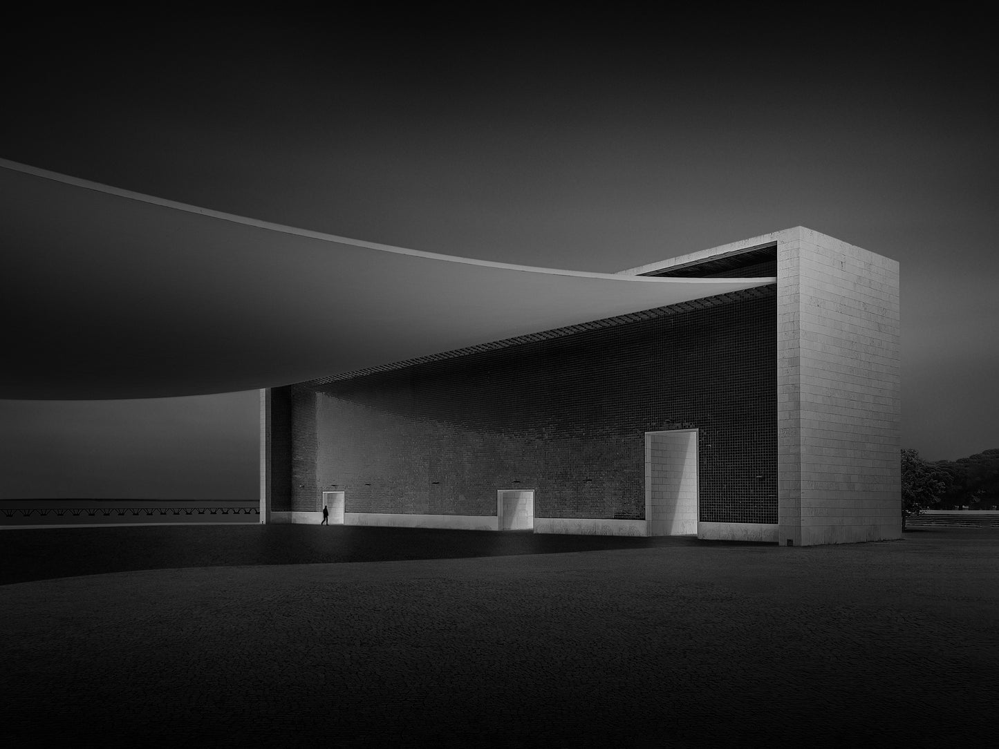 Making my photograph of Álvaro Siza’s Pavilion of Portugal, I used light to shape the edifice, further sculpting its minimalist forms. I was captivated by its immense curved concrete roof, almost like a sheet of paper delicately resting on its two rectangular supports. Equally compelling were the three doorways of different sizes - which could serve as an allusion to the choices we face in life, and the thresholds we decide to cross.